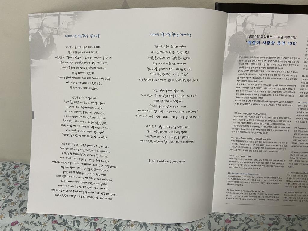 그리고 100곡에 대한 해설지가 들어 있는데 그것도 아주 좋습니다. LP에 들어 있는 음악이야 요즈음 스트리밍으로 어디서나 들을 수 있는 곡들이지만 이번 이벤트 LP는 패키지와 해설지만으로도 그 소장가치가 충분하다고 생각합니다.